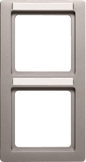 Rahmen 2fach mit Beschriftungsfeld senkrecht Q.1 alu samt, lackiert. Abdeckrahmen mit Beschriftungsfeld. Für senkrechte Montage. Für Verwendung von Zentralstücken alu. Unterputz-Installation, Flächenprogramm, 2-fach. Material: Kunststoff, Thermoplast, bruchsicher, halogenfrei.